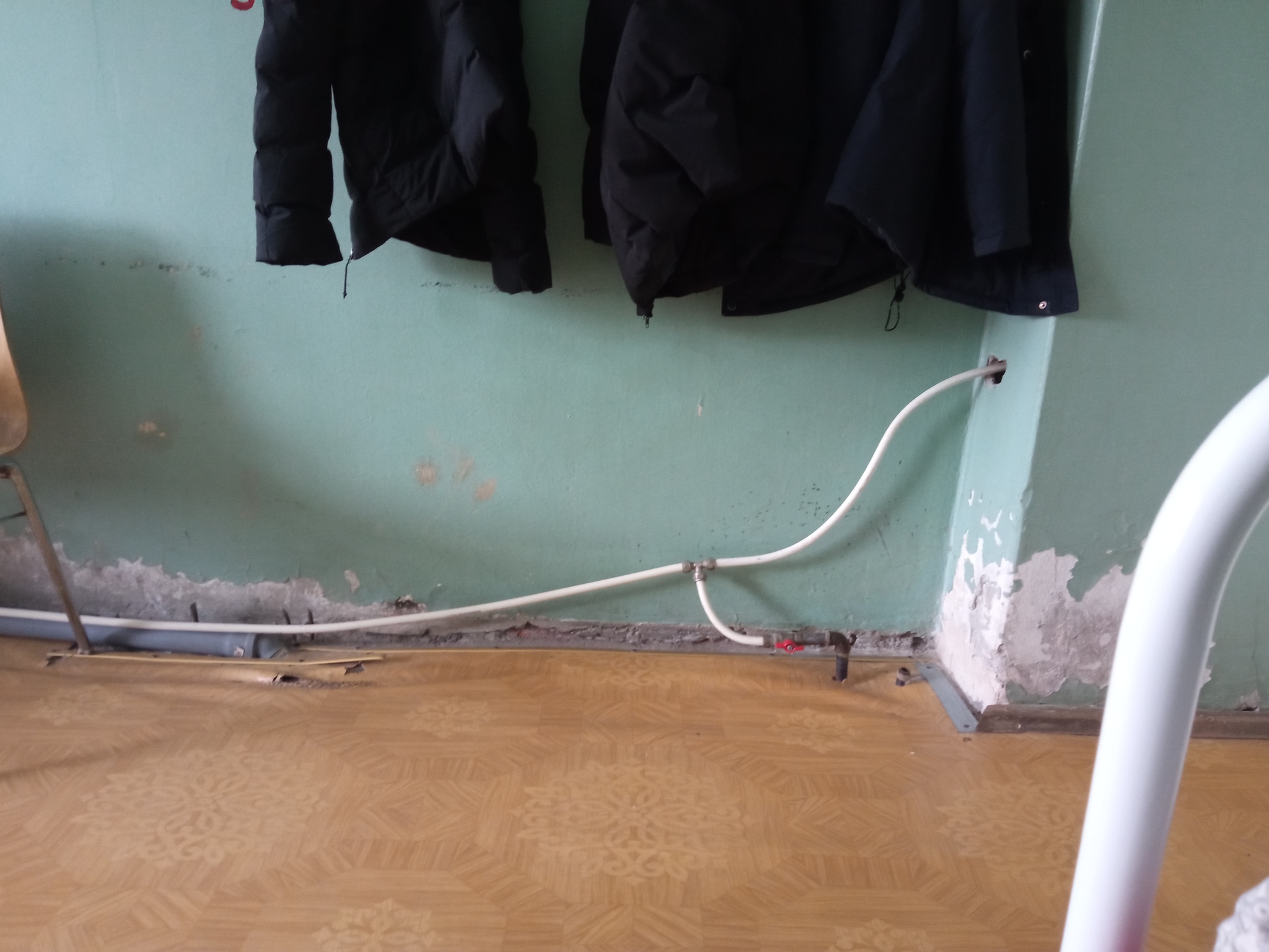 Палата выглядит обшарпано, но ржавые трубы заменены на металлопласт, проложенный, впрочем, абы как.