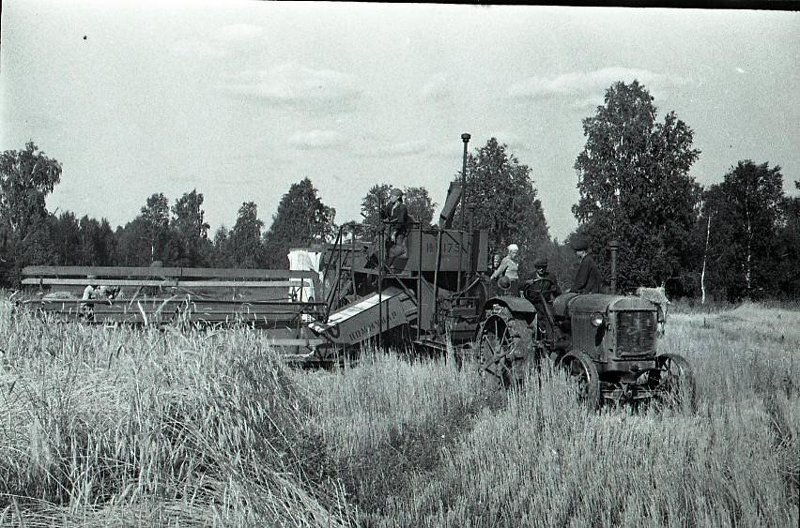 Фото с названием "Коммунар". Точной датировки нет, но название есть. Вообще, в интернете есть фотографии подписанные именно как "Коммунар" и на которых трактор похожий на "СТЗ-1" или "СХТЗ-15/30", но я не готов говорить какая именно там марка комбайна.