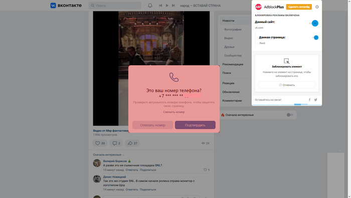 С недавнего времени Vk стал принудительно требовать подтвердить номер телефона. Раньше можно было просто закрыть это окно, а сейчас уже нельзя. Правда это происходит не на всех страницах, но всё равно ограничивает мне функционал. А проблема в том что я потерял доступ к тому номеру телефона и другого номера нет. Но доступ к почте на которую завязан этот акк всё же имею.