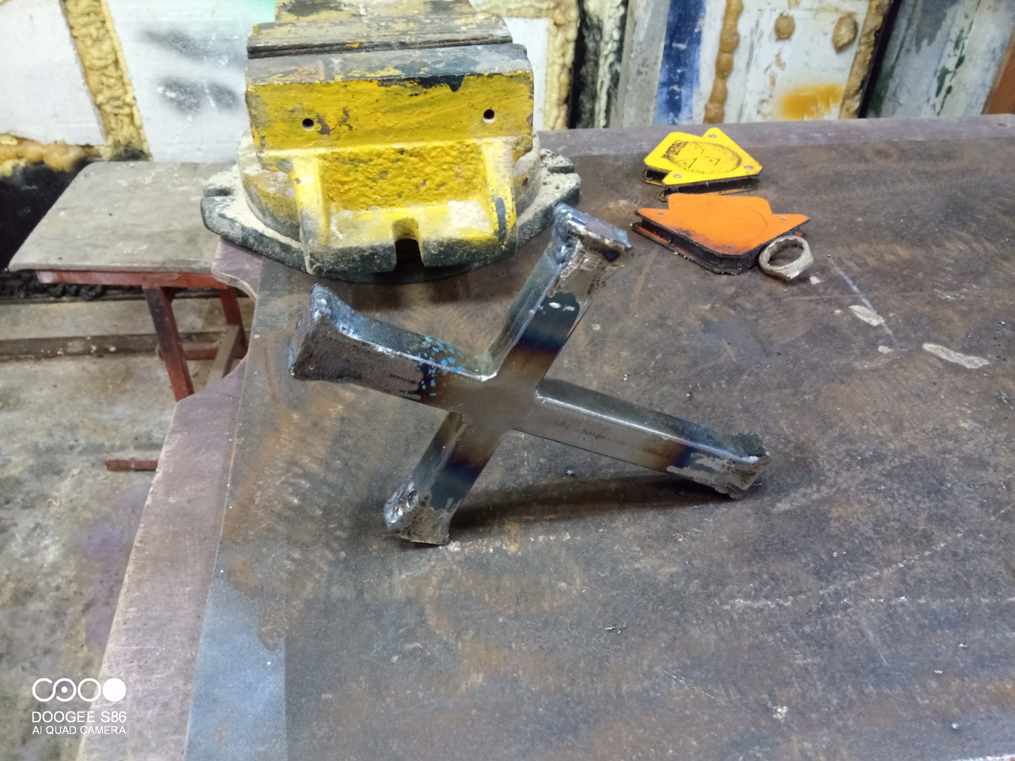 Думал, что достаточно будет сварить два квадратных профиля и покрасить. А потом начал шлифовать, кончики креста утолщать ... кольцо для цепи. Эх, жалко времени не хватило ...