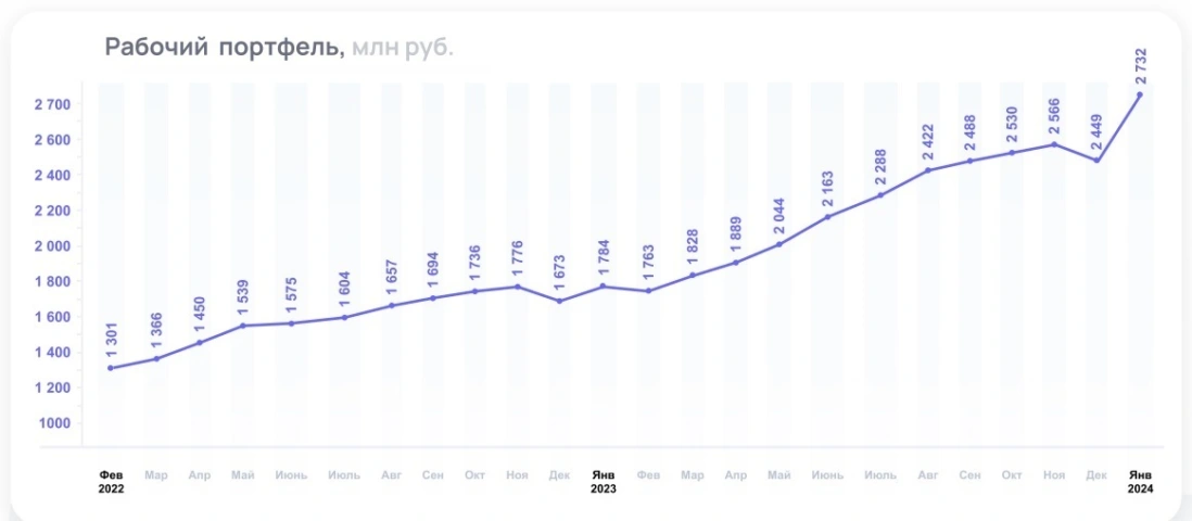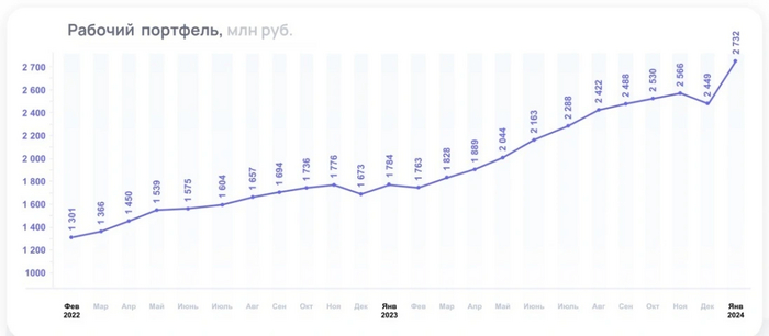 🧮Финансовые активы заемщика на 30.09.2023 года составляют 3 076 млн. рублей, при этом рабочий портфель на конец сентября равен 2 488 млн. рублей, там образом доля просроченной задолженности составляет 588 млн. рублей (или 19,1%).