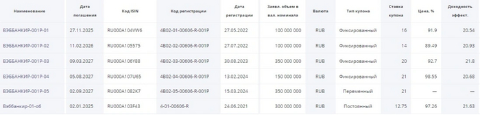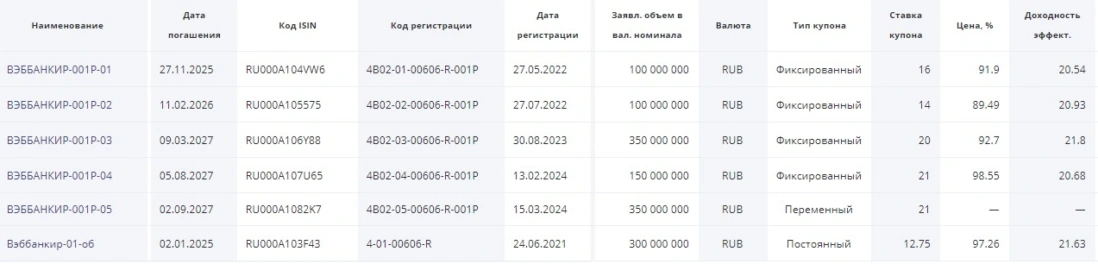 Облигации Вэббанкир на размещении