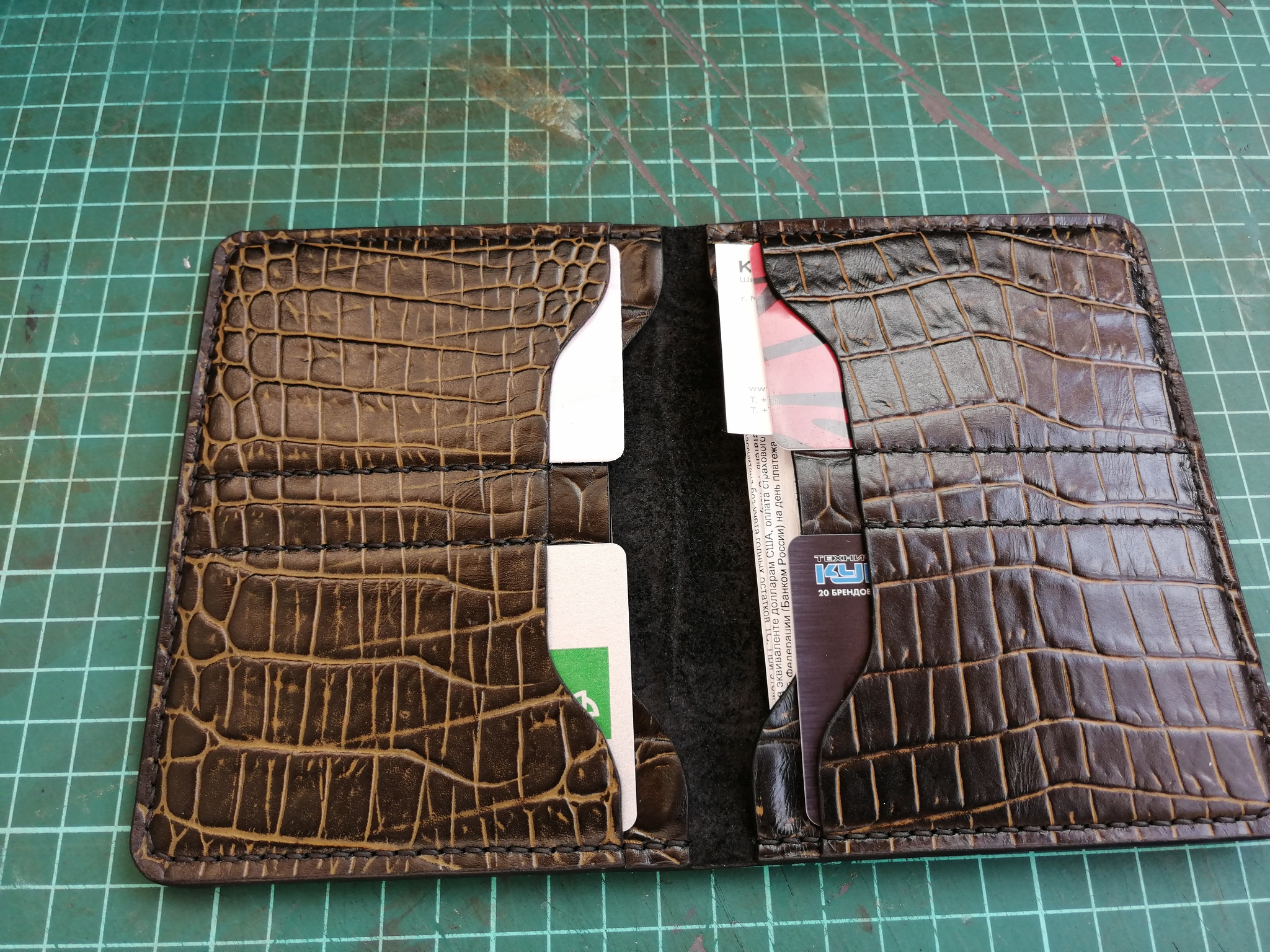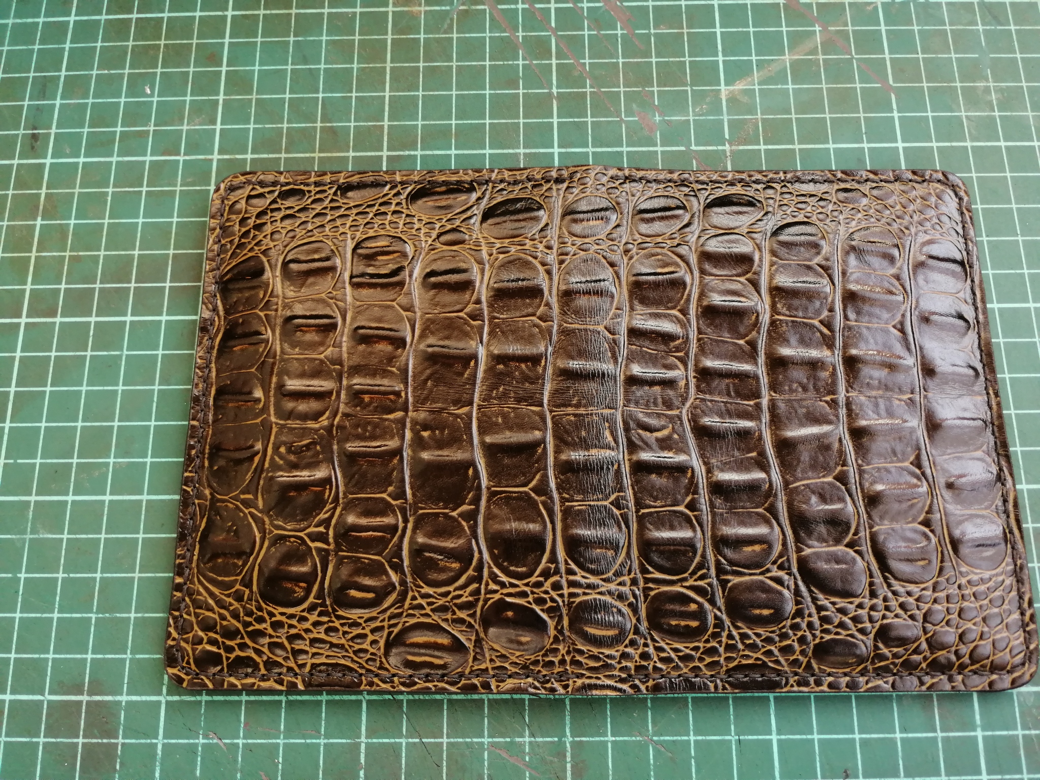Есть у меня кусок коровы, которая прикинулась крокодилом. Купил по случаю, пользую в некоторых изделиях для кармашков, кожа плотная, и красиво смотрится при комбинировании с черной или темно синей кожей.
