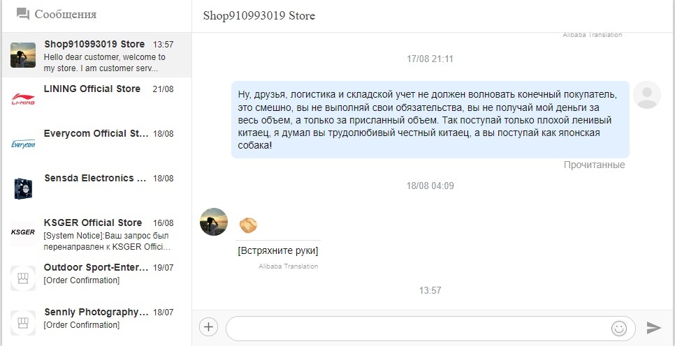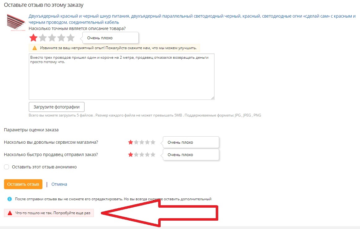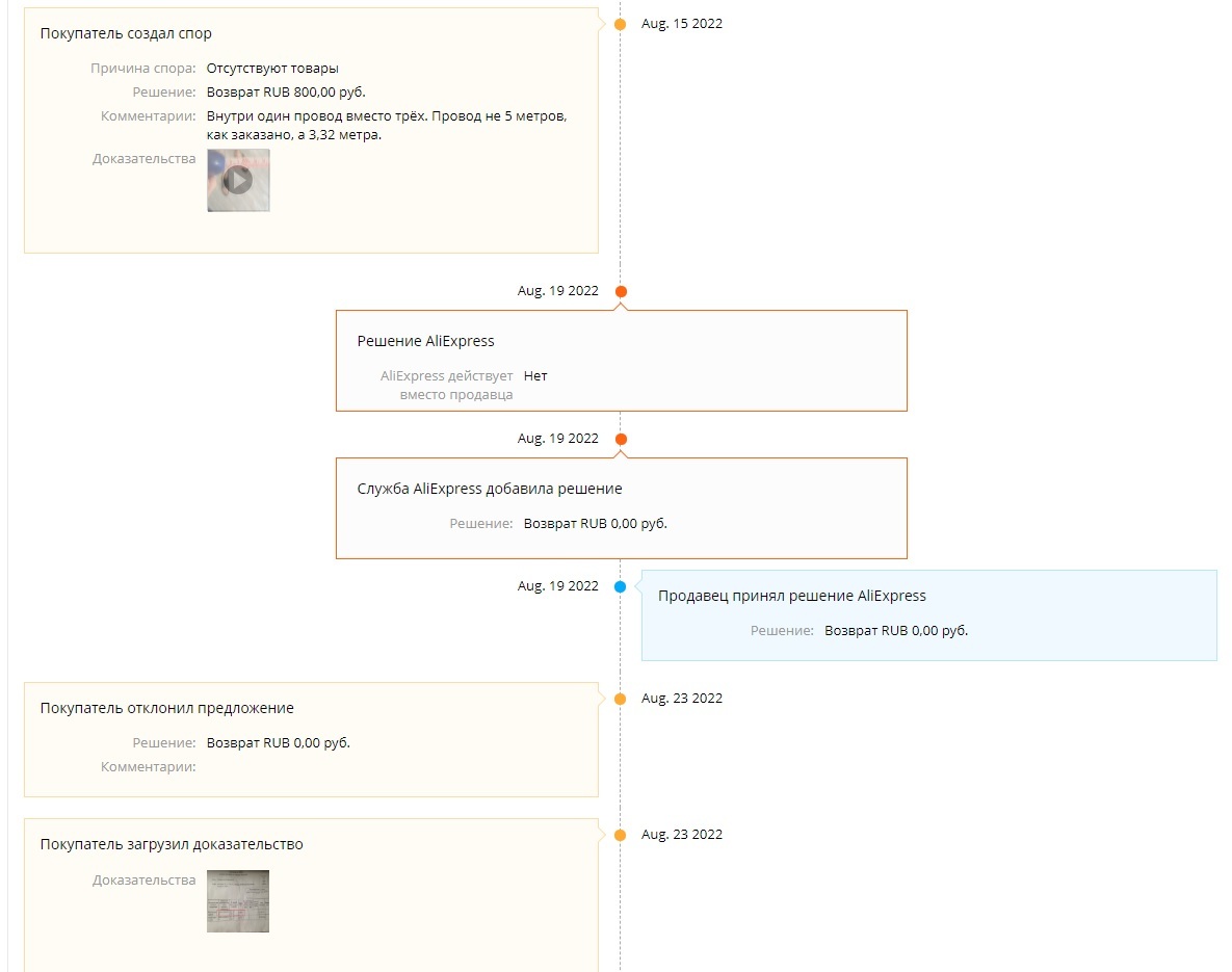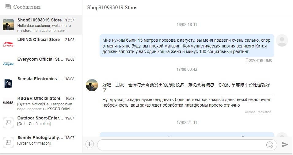 Принимайте в Лигу тупых - не снял процесс распаковки посылки, тк не помнил сколько заказал и малый вес не насторожил. Должно быть 3 провода по 5 метров, а в посылке огрызок на 3 метра. Алик закономерно говорит - деньги получит хитрый китайский собака, тк невнимательный лаовай не снял видео с документом с почты и распаковкой посылки, а снял уже распакованное, на вес в 58 грамм в 15 метрах медного провода шерифу похуй, это проблема индейца. И похуй на идеальный рейтинг покупателя. Как я вижу - отменяю спор, соглашаюсь на доставленное и ставлю 1 звезду - а вот хер там, пишет ошибка, попробуй позже. И так 5 раз. То-бишь наебывать с высоким рейтингом он будет и дальше, а российский алик будет получать свою маржу. Теперь и моих заказов коснулись руки российского Мидаса наоборот mail.ru group. Но есть и положительный момент - эта наука досталась мне девшего.