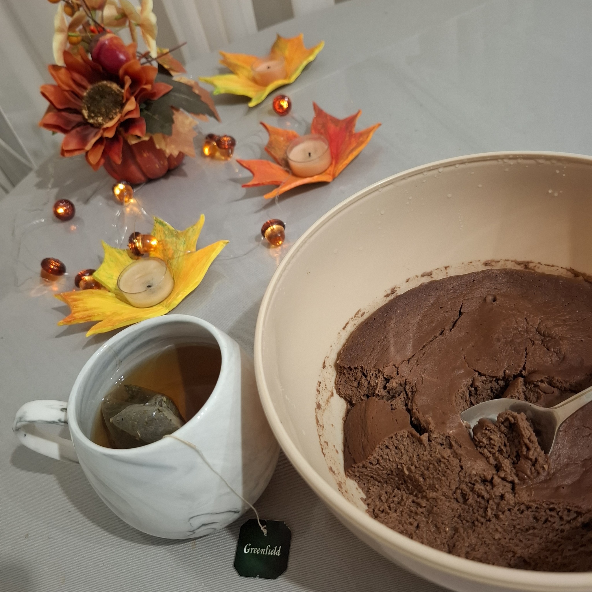 Яблоки почистить, бухнуть к ним яйки и какаву с сахзамом. И блендером замучить. Потом в микроволновку минут на 10, но надо смотреть, чтобы запеклось. Если болтается в контейнере жижой, то допекать, чтобы не болталось.