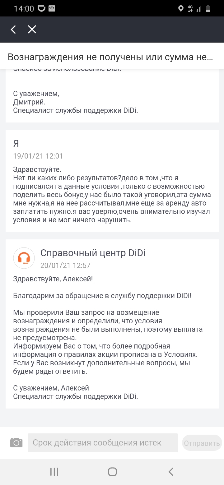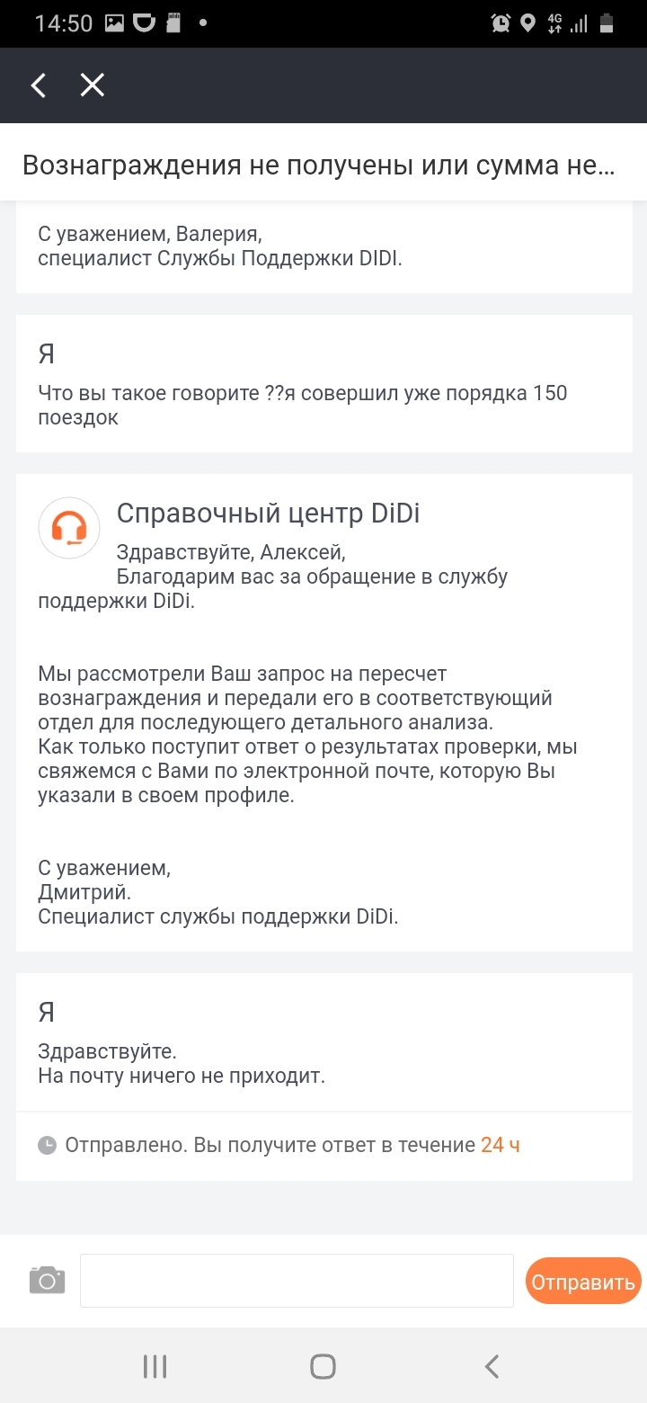 Супер.В сухом остатке имеем выполнение всех правил со стороны водителя и с другой стороны агреатора ,нежелающего платить заслуженное ,обещанное им же самим вознаграждение .При этом Компания считает ниже своего достоинства полностью разобрать ,с их стороны, спорный момент и раскрыть причину своего поведения,чувствуя свою безнаказанность.