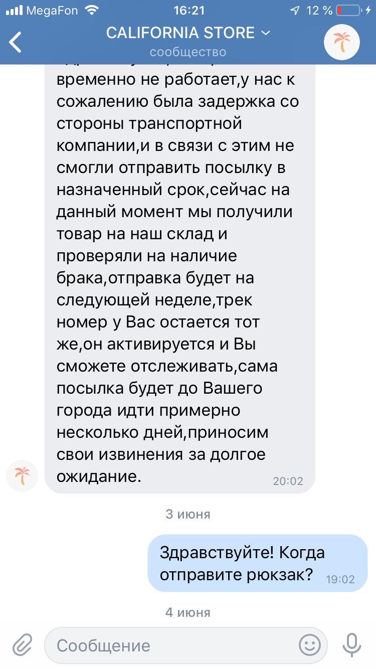 Потом прислали номер для отслеживания, но посылки с таким номером обнаружено не было. В указанные сроки рюкзак не пришёл.