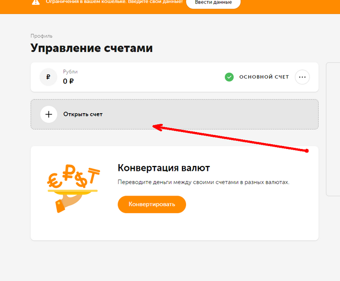 Добавляем счет в долларах