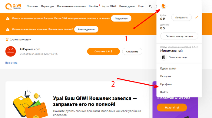 Далее гайд по регистрации киви кошелька