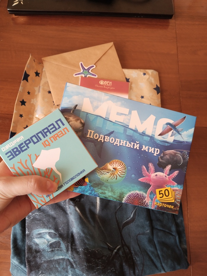 Тут были и вкусняшки, и книга (я люблю страшилки), и моя любимая вышивка, и подарки сынишке. Была и милая открыточка) Ну и, конечно, она, королева посылки - очень крутая и атмосферная футболка!!! Спасибо, Мария!!!