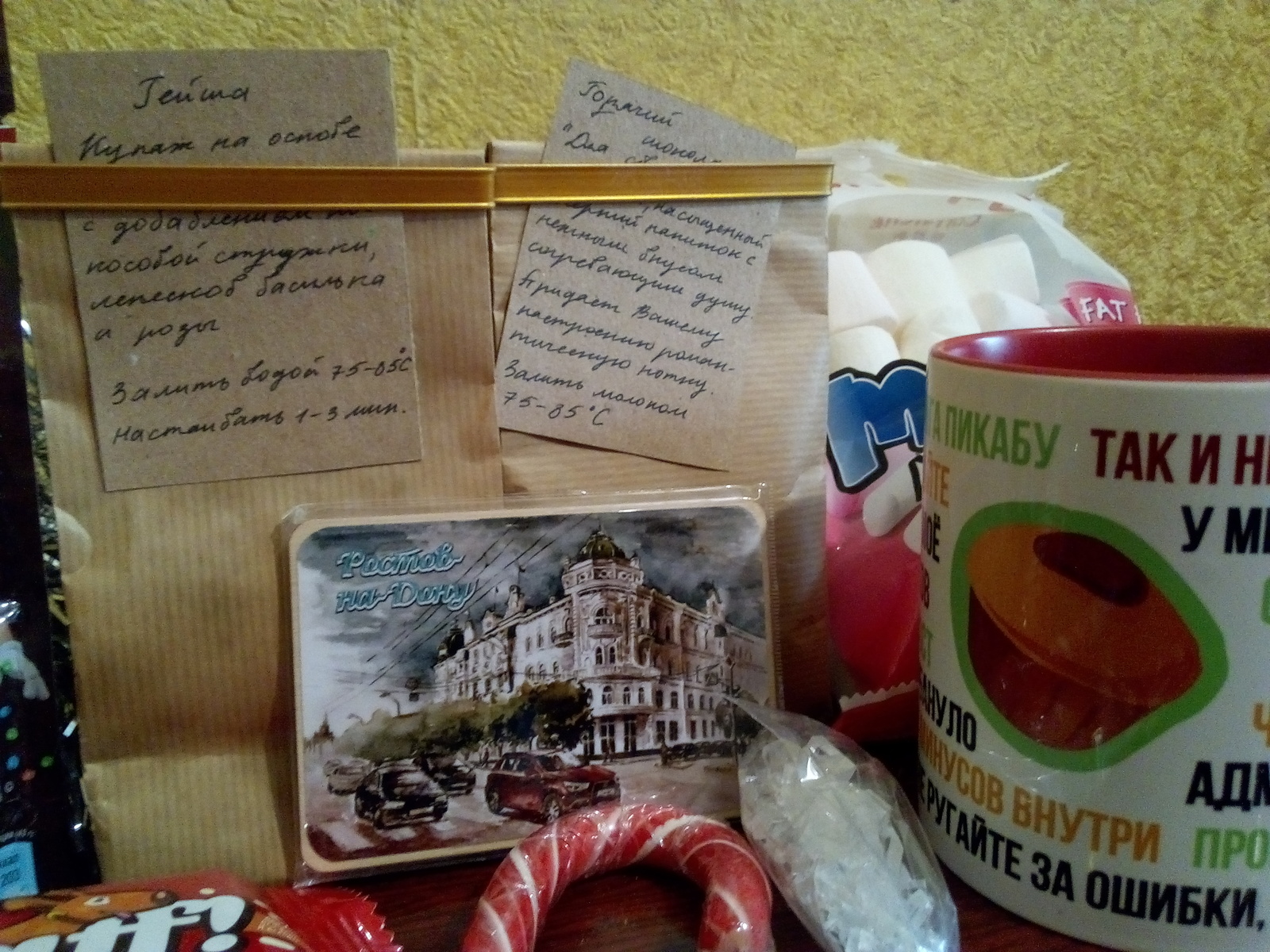 Коробка полностью пропахла чаем (это же чай? :D) "Гейша". А о такой кружке можно только мечтать)