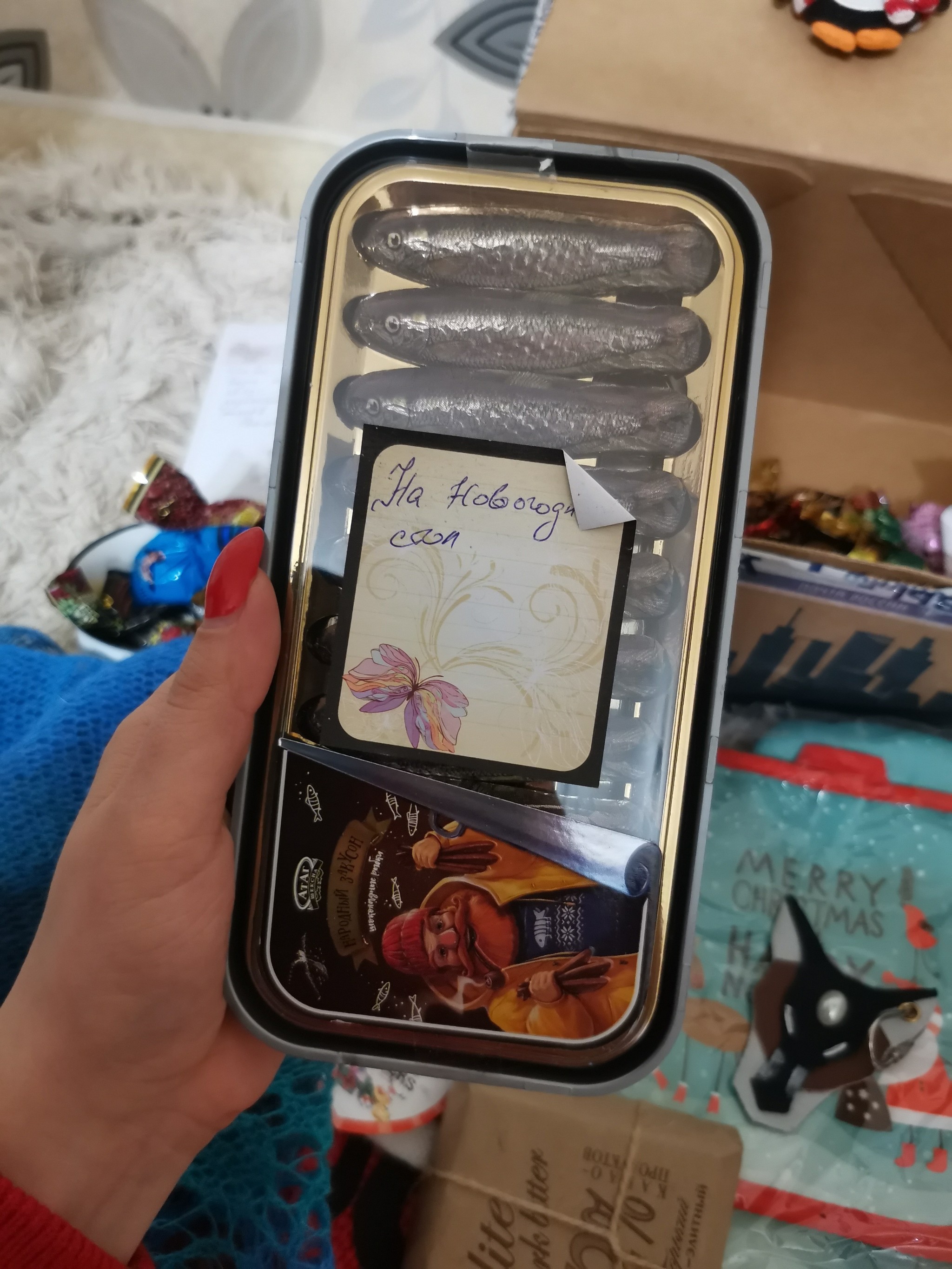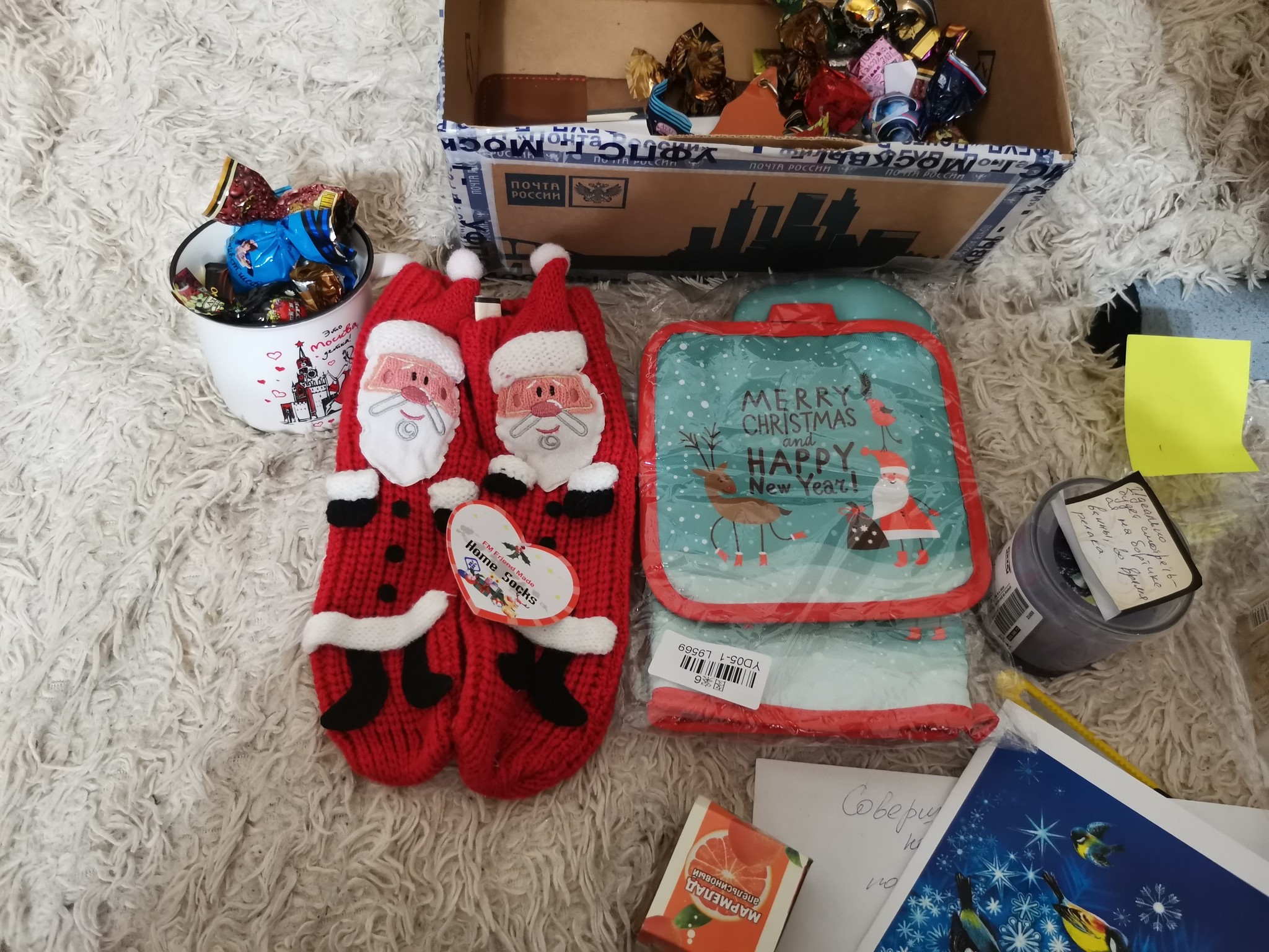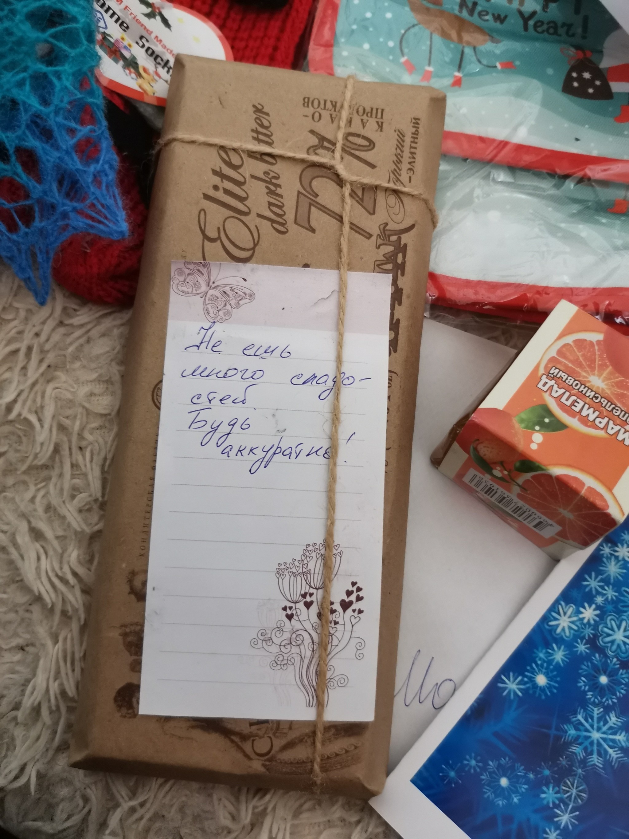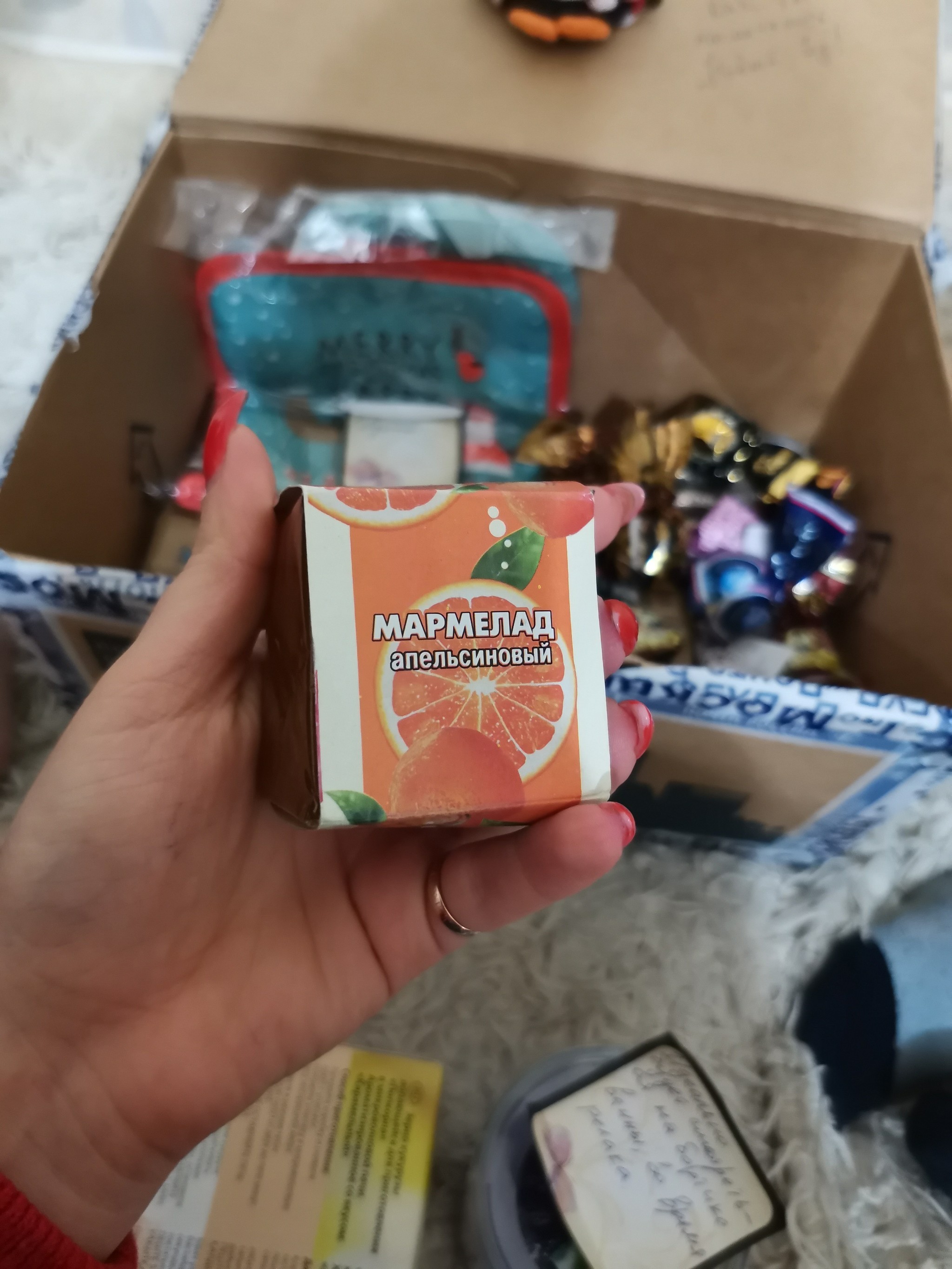 Всей семьёй очень ждали, когда получили очень обрадовались. Даже нет, не так..Эндарфины зашкалили у всех членов семьи. В коробочке оказалось очень много полезных и вкусных вещичек. А ещё оригинальная открыточка с поздравлением, ммм так приятно 👏Супер кружечка, вкусняшки, красивый шарфик, носочки, волк брелок и обложечка из кожи на паспорт. Муж оценил очень Повер для того, чтоб быть на связи всегда. Принадлежности для посещения арома ванны с вкусно пахнущей свечей и гелем для душа. А ещё оригинальные конфетки с неменее оригинальными названиями 🔥👍😊Огромное спасибо мой дедушка, и конечно же спасибо Снегурочка твоей 👏👏👏👏❤️