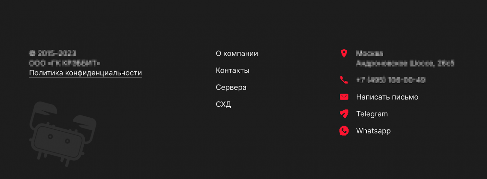 Прежний крабик, по просьбе клиента, поселился в подвале нового сайта