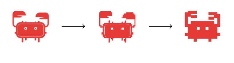 Наш креативный директор Антон перевел краба в 8-битную реальность. Этим решением он усилил ассоциацию серверов и hardware с цифровой тематикой. Да и само слово CRABBIT можно прочитать как CRAB8BIT. А это заветные символы для многих сисадминов :)