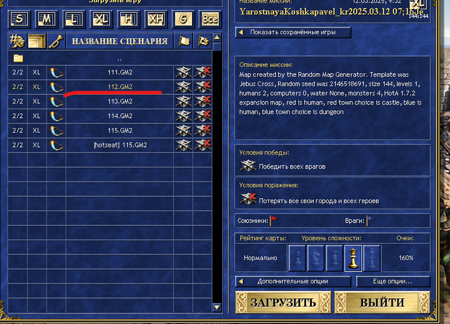 Теперь, если вы нажмете загрузить, то загрузится ваша игра, с вашим раскладом. А нам то нужен расклад противника.