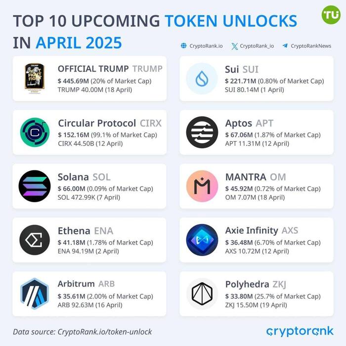 0 SweetCryptonews 6 месяцев назад Обновленный и более широкий список самых крупных разбанов апреля TRUMP - $445,69m SUI - $221,71m CIRX - $152,16m APT - $67,06m SOL - $66m OM - $45,92m ENA - $41,18m AXS - $36,48m ARB - $35,61m ZKJ - $33,8m Криптовалюта Биржа Трейдинг Заработок в интернете Ещё 0