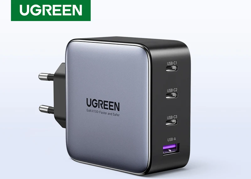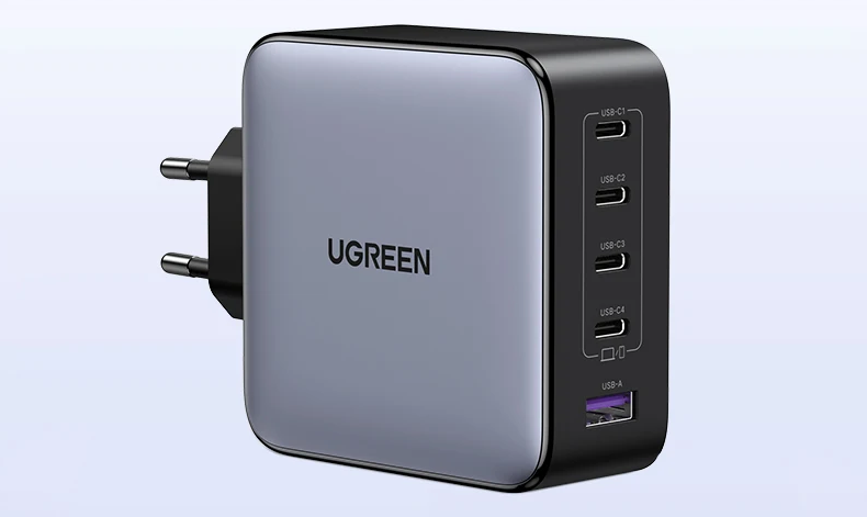 Качественное зарядное устройство UGREEN GaN общей мощностью 100 Вт. Имеет 4 порта USB-C и 1 USB. Стоит 2 500 руб. (не забудьте взять купон на странице товара) Ссылка на него