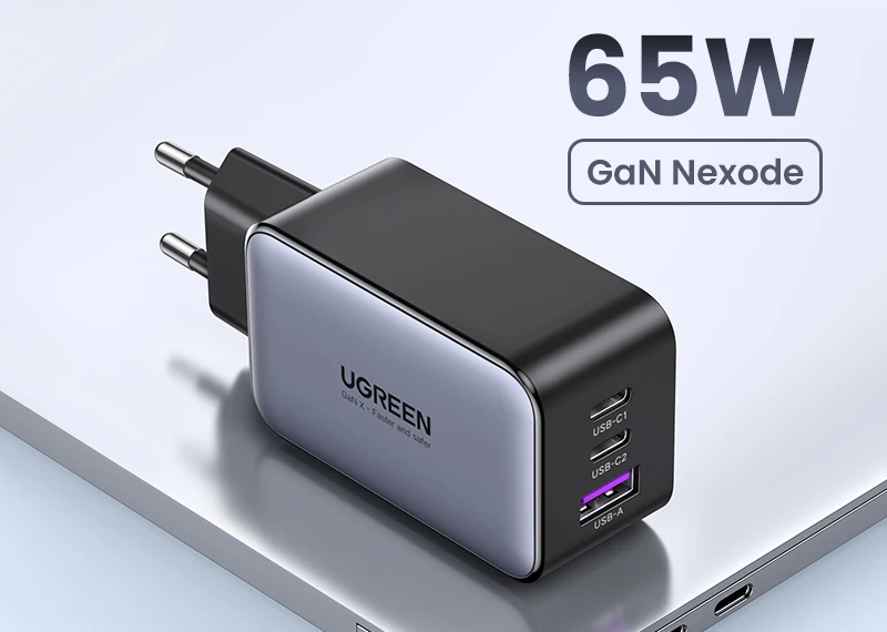 Зарядное устройство UGREEN GaN общей мощностью 65 Вт. Имеет 2 USB-C и 1 USB. Стоит 1 752 руб. (не забудьте взять купон на странице товара) Ссылка на неё