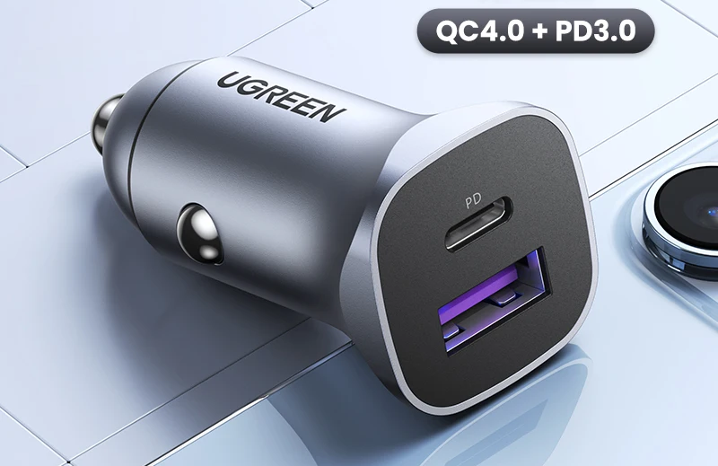 Автомобильное зарядное устройство металлическое UGREEN 30 Вт для кабелей Type C и USB. Стоит 970 руб. Ссылка на неё