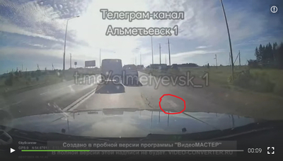 Очевидцы засняли на камеру момент очень опасной аварии. Легковушка, пытаясь объехать другие автомобили по обочине, подрезала "буханку", которую выбросило на встречную полосу.