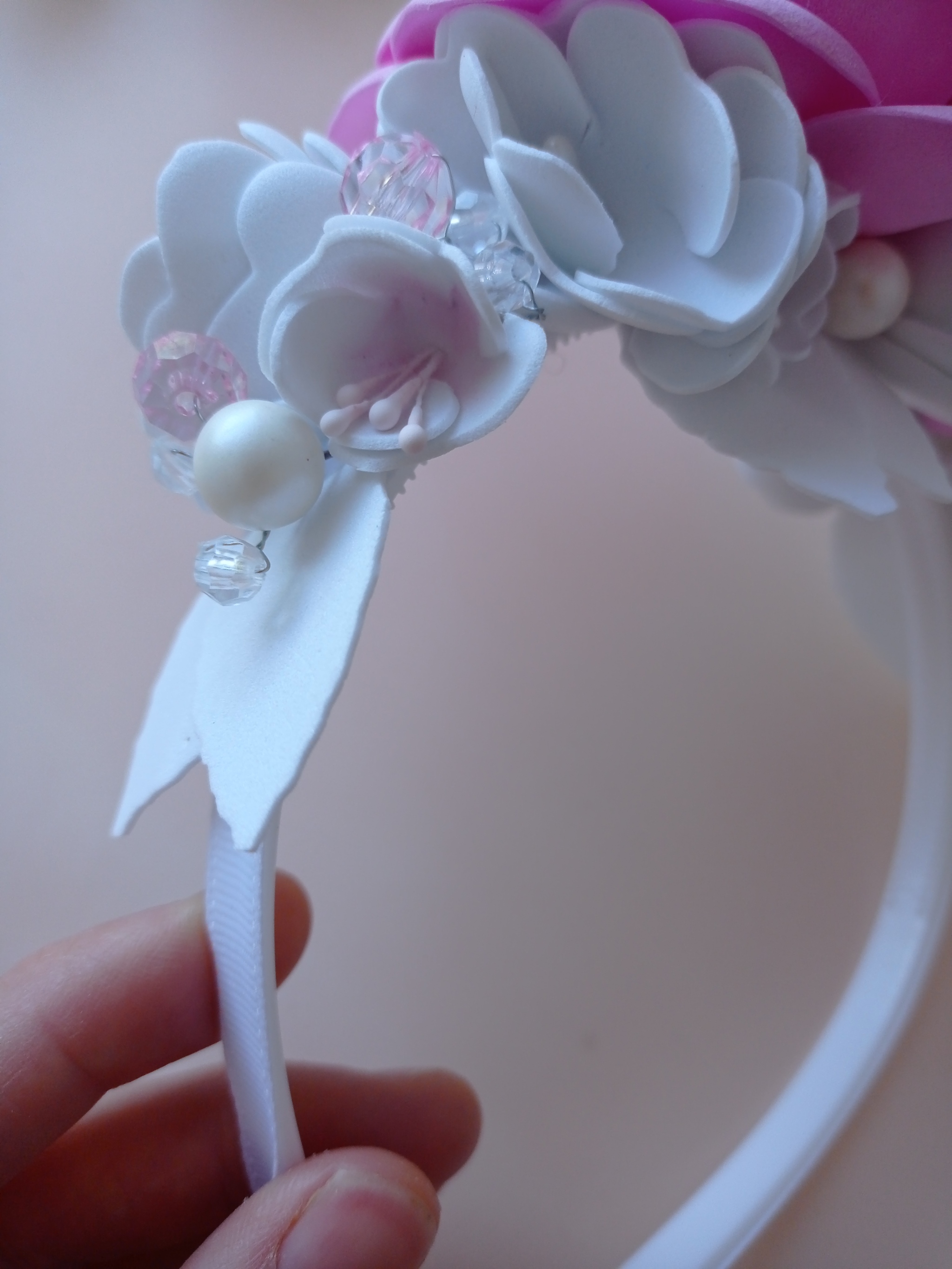 Прикупила бусинки,они выглядят,как роса)лепестки розы вырезала и пастелью белой раскрасила. Недавно увидела,как на одном сайте известном по рукоделию, лепестки розы формируют с помощью молда.прикупила,посмотрю,что получится)а пока так,но мне кажется тоже красиво получилось. Также купила белые бусинки,как ягодки что ли)ещё заказала ножи для вырубки цветов и машинку,как придёт,я сделаю пост и расскажу,что получалось)