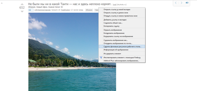 fresch Обои на рабочий стол. 10 лет назад Появится ли когда-нибудь функция в браузерах - кликнул по картинке правой кнопкой мыши - установить картинку в качестве обоев рабочего стола. Обои на рабочий стол Браузер Текст