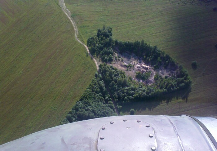 Действительно это была рубка. Законная или нет, мы не знали, сверху не проверишь. Однако выглядело это всё как кусочек леса, окружённый полем, в середине которого был костёр. И трактор.