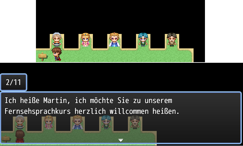 К каждому фрагменту дается первый человечек, который пишет и воспроизводит фразы фрагмента по-немецки.