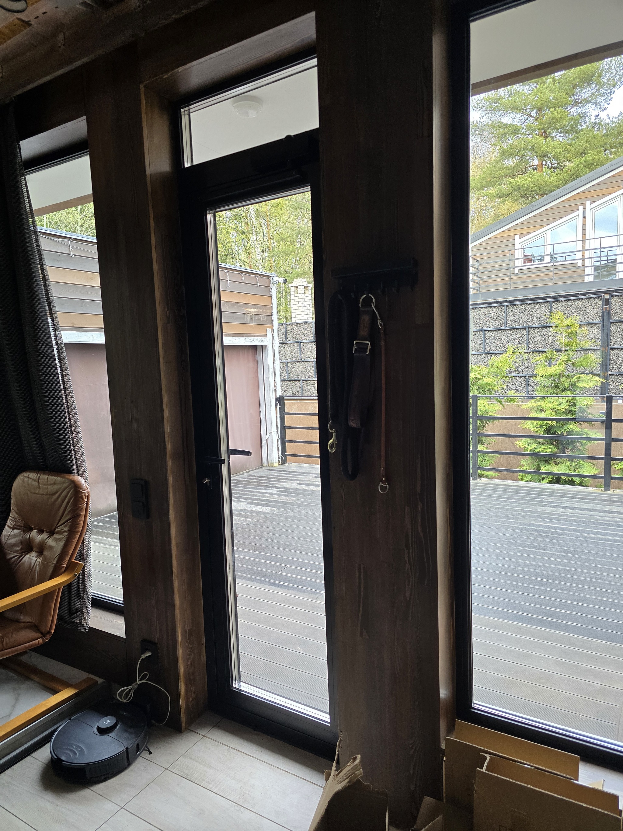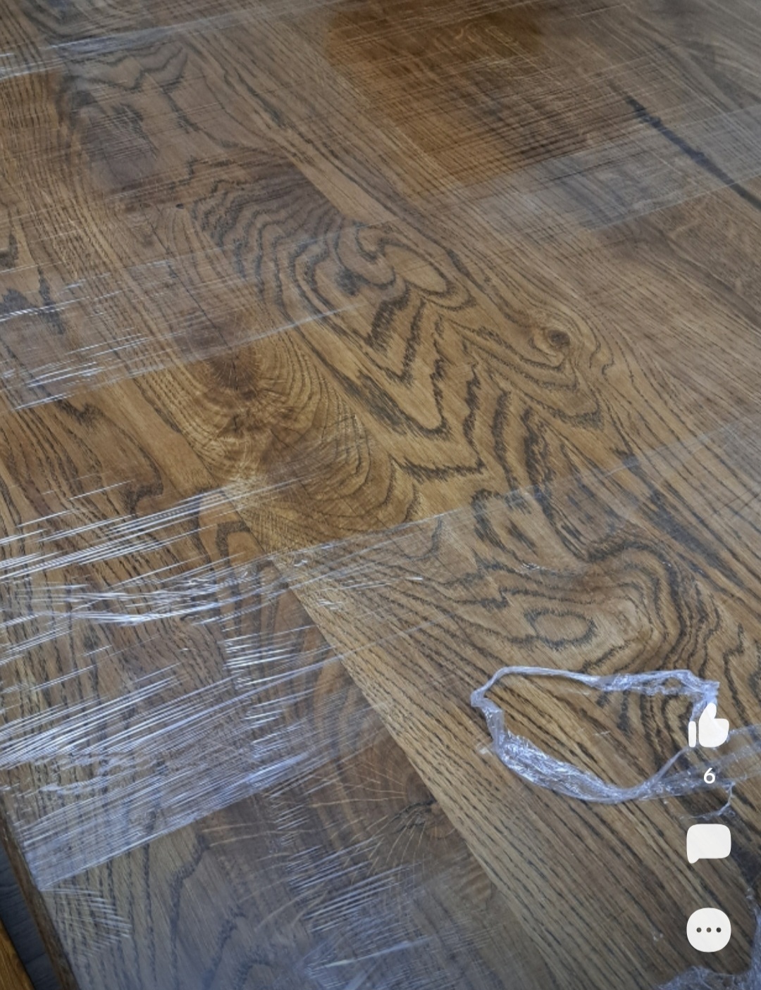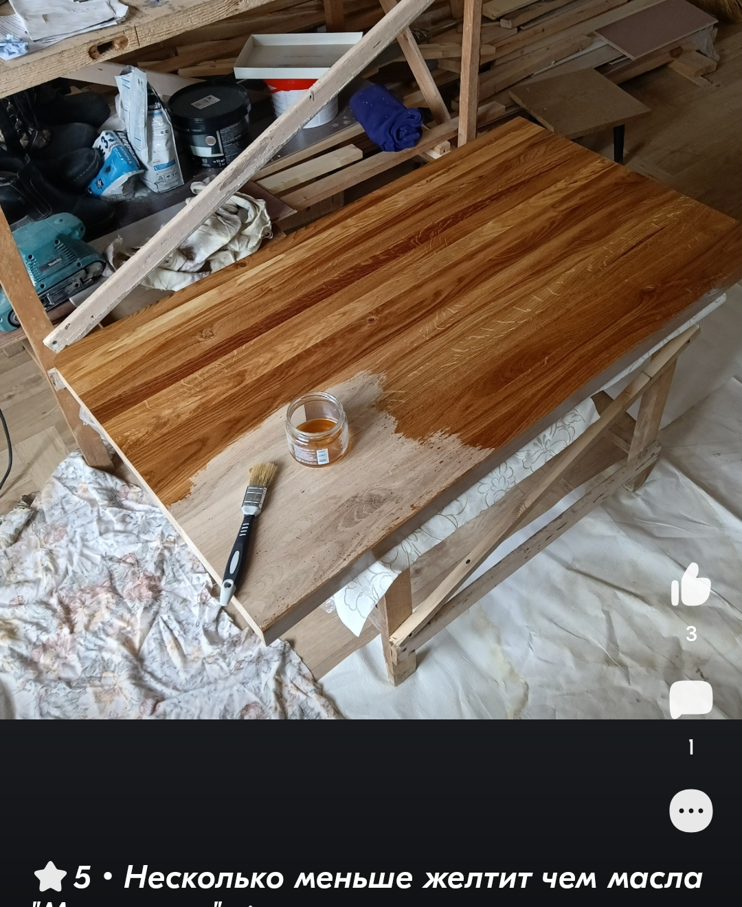 Та же лиственница, масло темнее, чем у меня, а все равно куча рисунка и довольно много дерева осталось цвета дерева. А у меня все закрасилось