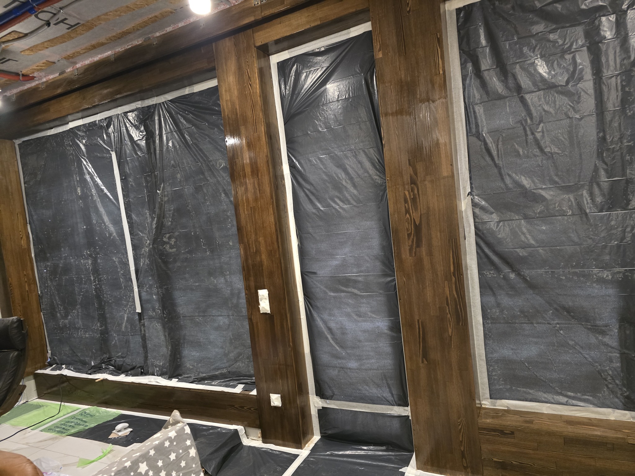 Вот, обшили стены. Не смотрите на саморезы, здесь будут уголки, видно ничего не будет