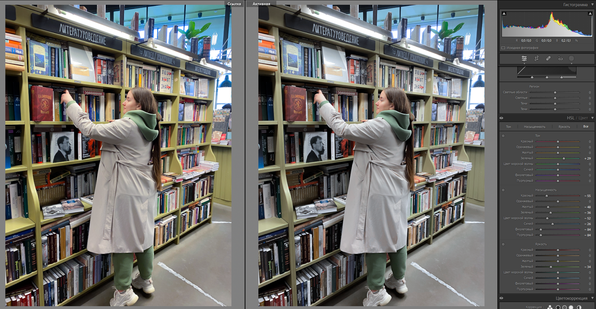 Первичная цветокоррекция закончена. Было – Стало: