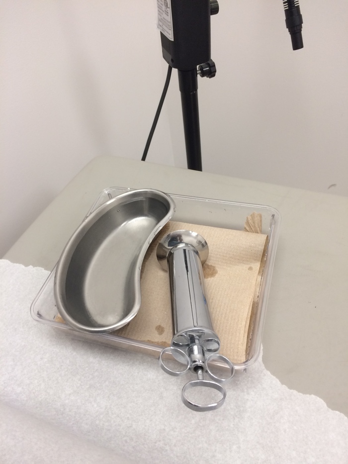 Девушка-ресепшионист принесла угрожающего вида шприц и ванночку с тёплой водой, совсем как на картинках в интернете, которые я заранее загуглил.