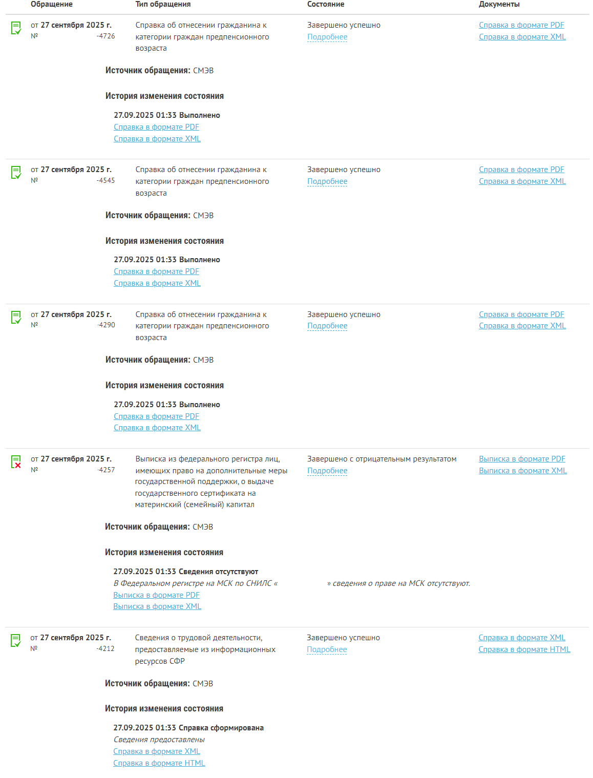 Сегодня пришло на почту сообщение, якобы мои обращения в СФР успешно обработаны. Причем в то время, когда меня никак не могло быть в сети. 21.09 я туда заходил, но никаких справок вроде не брал. А сегодня, 27.09, вот приезжает такое: