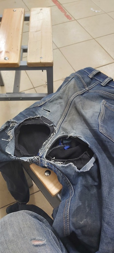 Это были джинсы из стрейч ткани? Или в предельную обтяжку и материал все время под напряжением? Может образ жизни или работа экстремальные? Вы помощник бурильщика?