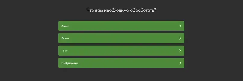 1. На сайте сейчас представлены популярные нейросети, отсортированные по 4 категориям: изменение текста, обработка аудио, обработка видео и обработка изображений.