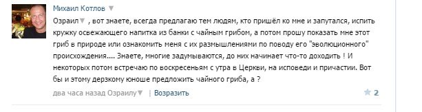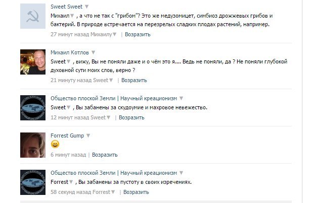 Vinkolt Общество плоской Земли 9 лет назад Захожу, иногда, в это общество троллей почитать комментарии, показалось забавным, парня забанили до кучи просто за смайлик) Религия Плоская земля Комментарии ВКонтакте