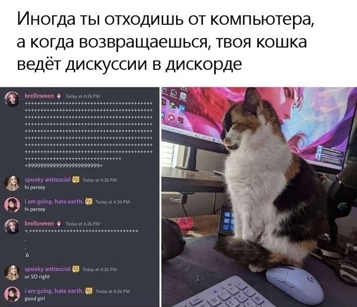 2022 VerhovniyMemolog Юмор для всех и каждого Общительная 1 год назад Телеграм - Три мема внутривенно Скриншот Кот Discord Переписка Telegram (ссылка) Домашние животные Компьютер 57 28 2 Ещё 0