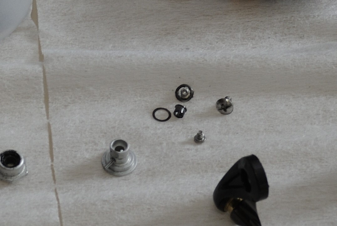 Обратите внимание на пластиковую (надеюсь фторопластовую) втулку (в центре). Надевается на шток шпули шляпкой вверх.