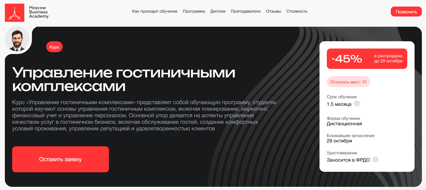 Управление гостиничными комплексами от Moscow Business Academy — Современный подход к работе с крупными структурными проектами.