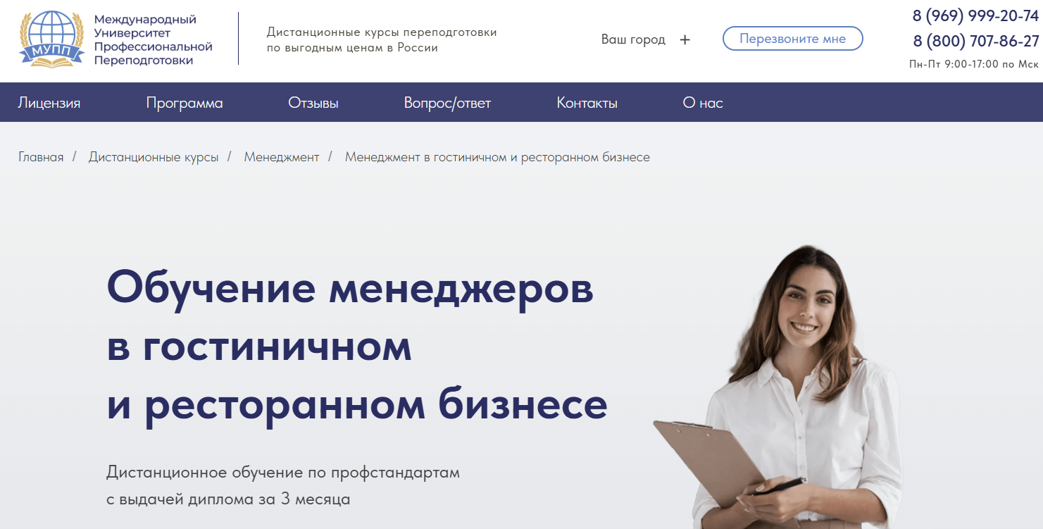Обучение менеджеров в гостиничном и ресторанном бизнесе от МУПП — Современный курс на практической основе, много информации от отраслевых спецов.
