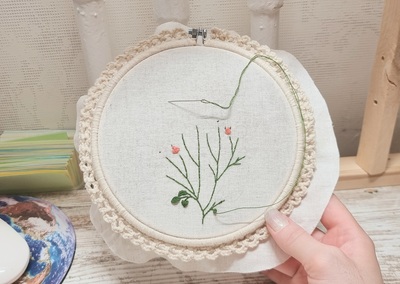 Про обмотку пялец читала давно (ещё в какой-то доисторической Бурде, там полоской ткани обматывали). Можно и обвязать. Но этот слой кружев, мне кажется, только мешать будет.