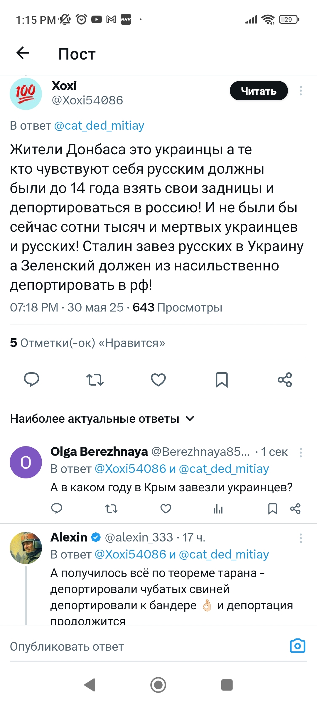 664 TaerySora Объясните 7 месяцев назад У нас насильно завозили русских на Украину? Я могу ошибаться, но откуда у них это в головах? https://x.com/Xoxi54086/status/1928395567794683924?t=pT-eoPx... Политика Украина Россия и Украина Спецоперация Срач Война Длиннопост 18 2 2 Ещё 0