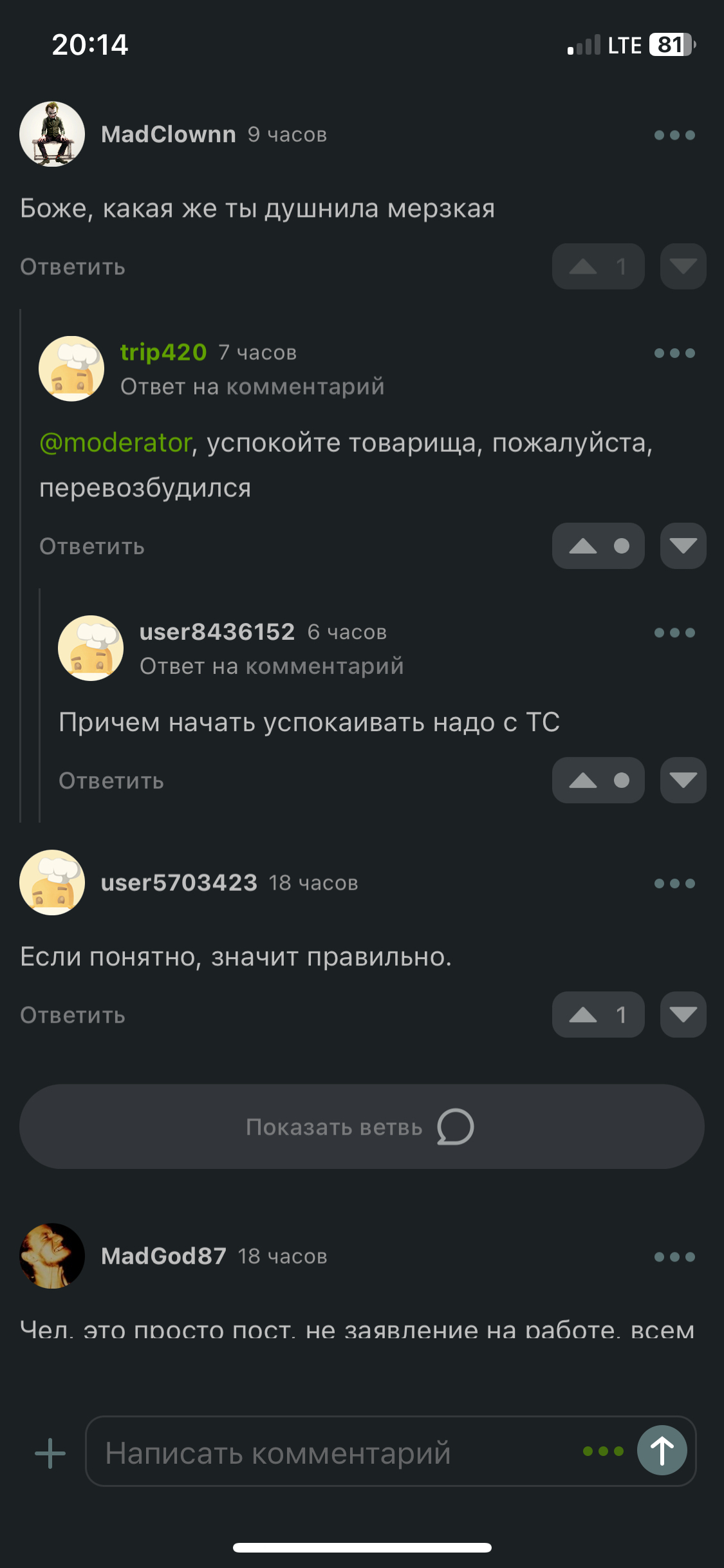 И он в комментариях начинает звать модератора , что видите ли , его оскорбили!