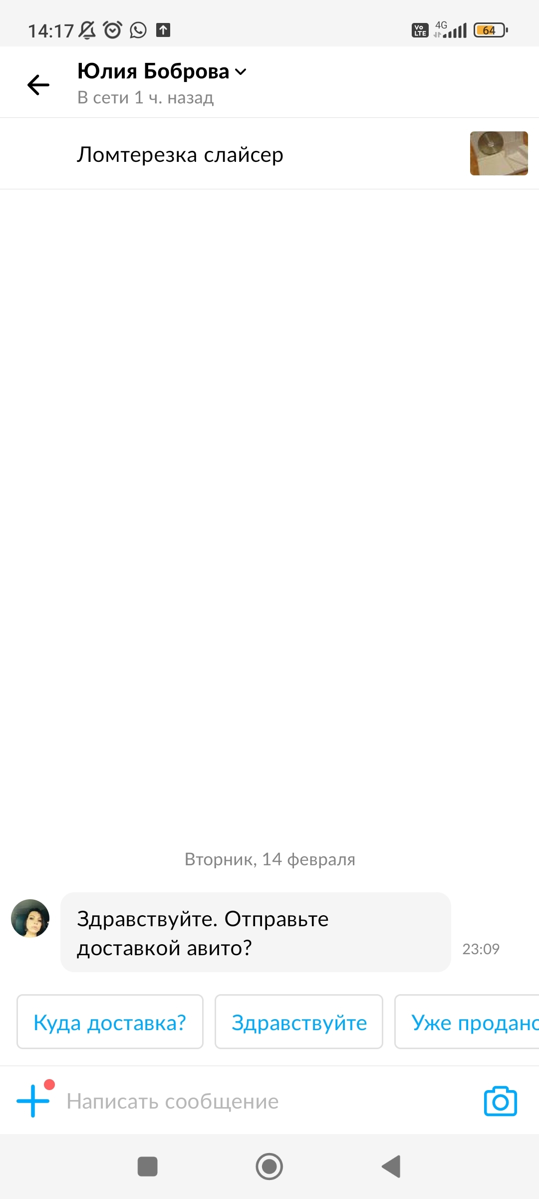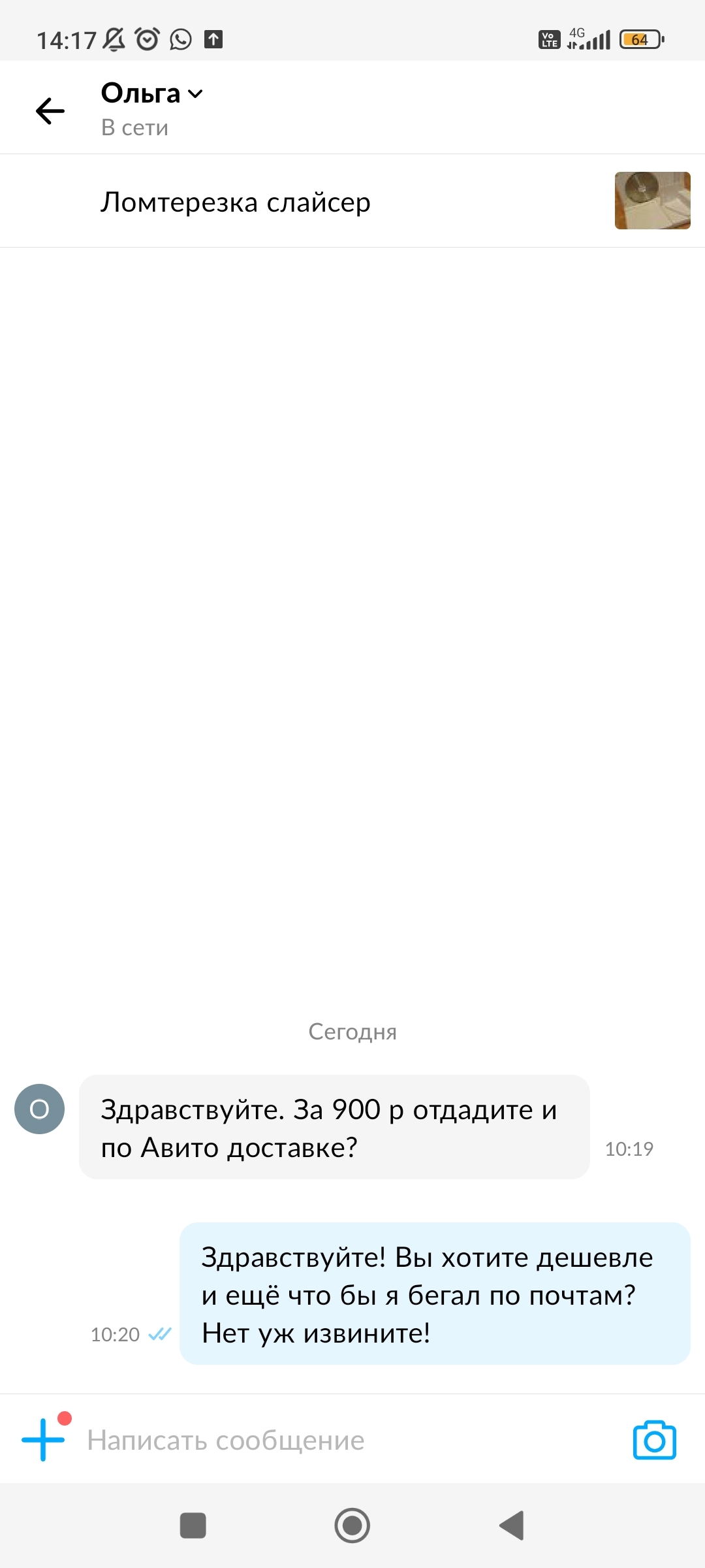 0 Есть официальный ответ CrazyKokushki Объявление Авито 2 года назад Выставила на Авито продажу слайсера. Ни один из моего города по поводу объявления не обращался. Только вот такие предложения поступают. Ребята, скажите, кто с таким сталкивался Или это просто опять какой-то развод и обман. Объявление Авито Обман Продажа Сомнения Мошенничество Длиннопост Негатив 1 Ещё 0