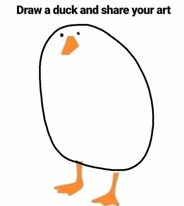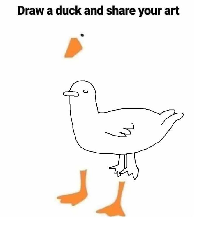 11002 tochkalug Обычным людям предложили завершить картинку утки 6 лет назад У нее уже был готовы клюв, глаз и лапки – нужно было просто добавить деталей. Пользователи активно принялись за дело. Некоторые рисунки выглядят очень необычно. Рисунок Утка Воображение Длиннопост Я художник - я так вижу