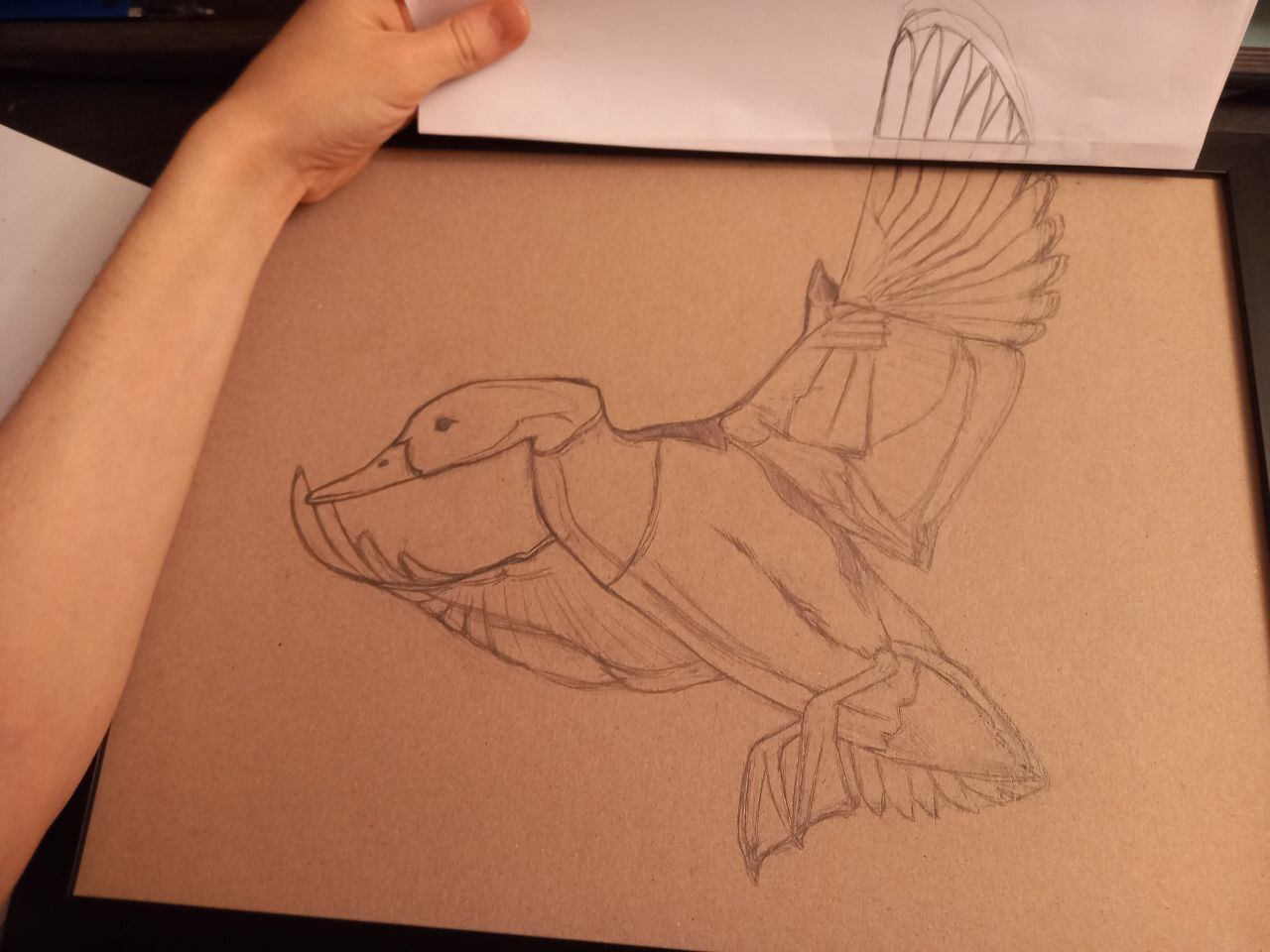 Когда изображение предполагает значительный выход за раму, эскиз для выступающей части я рисую отдельно.