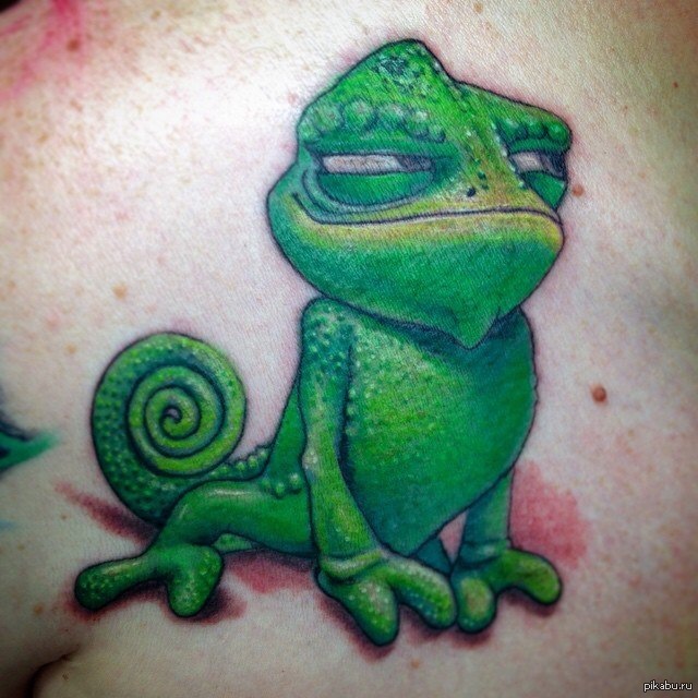 3 neanhim Обзавелся татуировкой хамелеона. 11 лет назад Очень неплохо получилось на мой взгляд. Делала Кристина Жук из Краснодара. Тату Хамелеон Рапунцель: Запутанная история