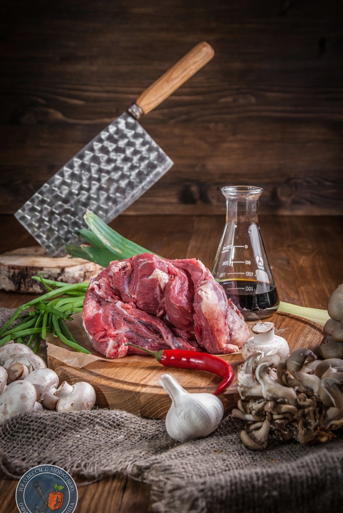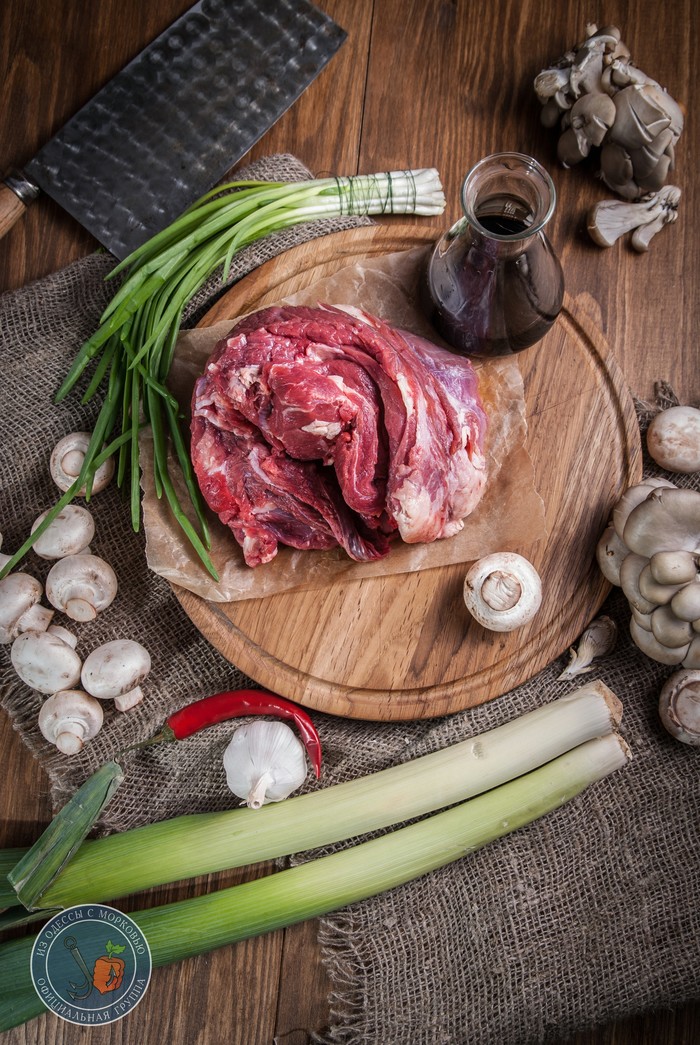 - 600-800г говядины. Желательно с жиром. Я взял кусок шеи. Подойдет и лопатка и задняя часть.