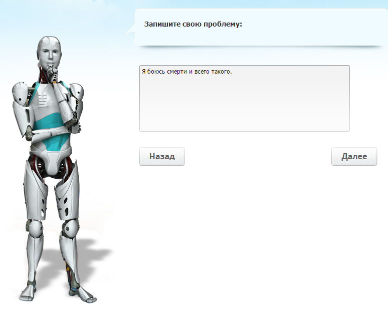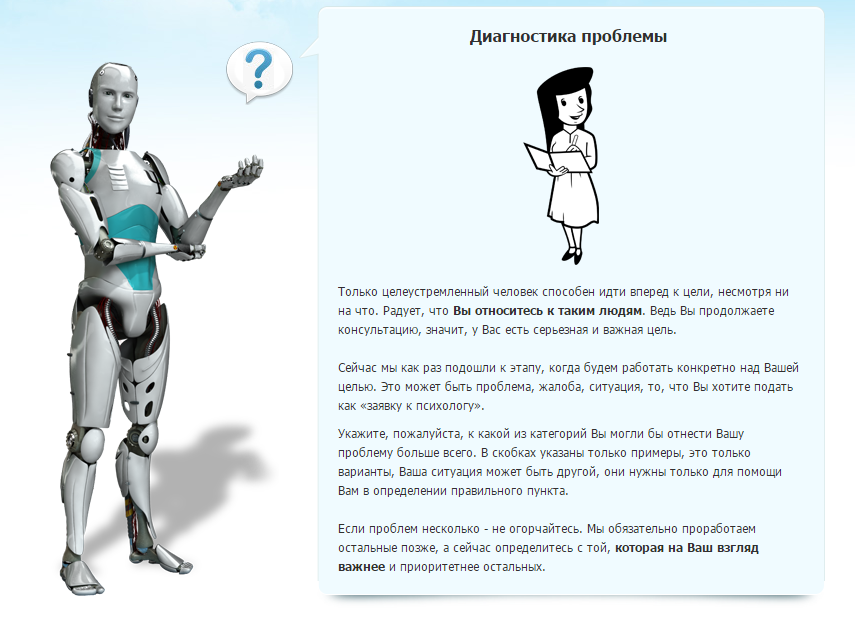 Затем спрашивает чего бы вам хотелось больше от робота-психолога.