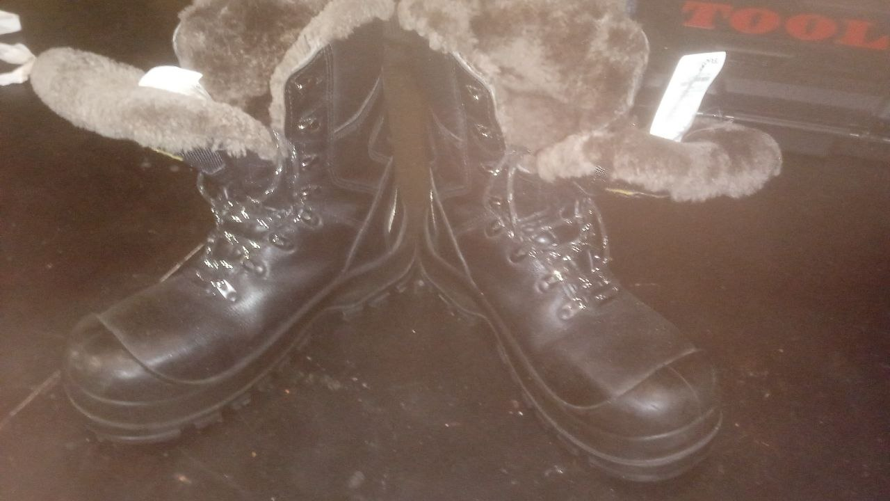 Так что теперь про них. Выбирал я максимально тёплую обувь, потому что в планах было частое сидение на берегу речки. Ну и довыбирался. Скажу так. В минус 35 в них при активной ходьбе (не беге!) становится жарковато. А в минус 28 я поспал на снегу 3 часа и вообще не замёрз (про куртку, комбинезон и термобельё расскажу как-нибудь потом, возможно никогда). Они ощутимо тяжелее предыдущих моделей, в них стоит защитный носок на 200 Джоулей, и весь носок покрыт резиной, из-за чего немного напоминает клоунский ботинок 😅 (пинать различные объекты стало куда приятнее, подтверждаю). Стандартные антистатические стельки сразу убрал, поставил свои ортопедические. Утеплитель в них мягкий, на ощупь синтетический и довольно объёмный. Подошва высокая, на скользком льду держатся на 3,5 балла из 5. Ледоступов нет. Шнуровка так же при помощи крючков, но в этот раз резервных дырочек нет. Клапан полуглухой. Разнашивать по ноге не пришлось, сразу были впору. Кстати, касательно материала, а именно кожи - я после покупки их помыл, а потом начал начищать (крем сальтон пользую) - так вот, они сожрали почти полную баночку крема, а потом ещё полбанки воска. Чищу обувь я обычно в 2-3 проходки, жду, пока впитается, потом полирую, повторяю, пока крем не перестаёт впитываться за полчаса, потом убираю остатки крема, покрываю воском. А тут я 8 раз их чистил, прежде чем крем перестал впитываться, потом ещё и воск весь впитался, 3 раза пришлось покрывать воском.
